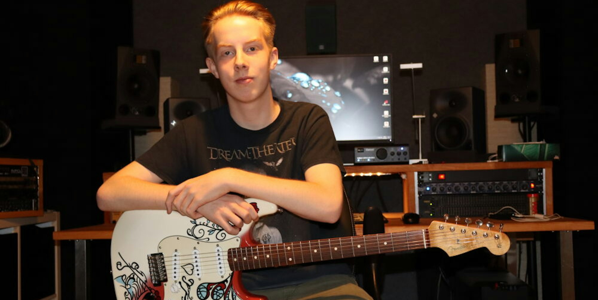 Jonathan Jungbluth, Preisträger eines EU-Wettbewerbes, im Musikstudio im Keller des elterlichen Hauses in Sankt Augustin.