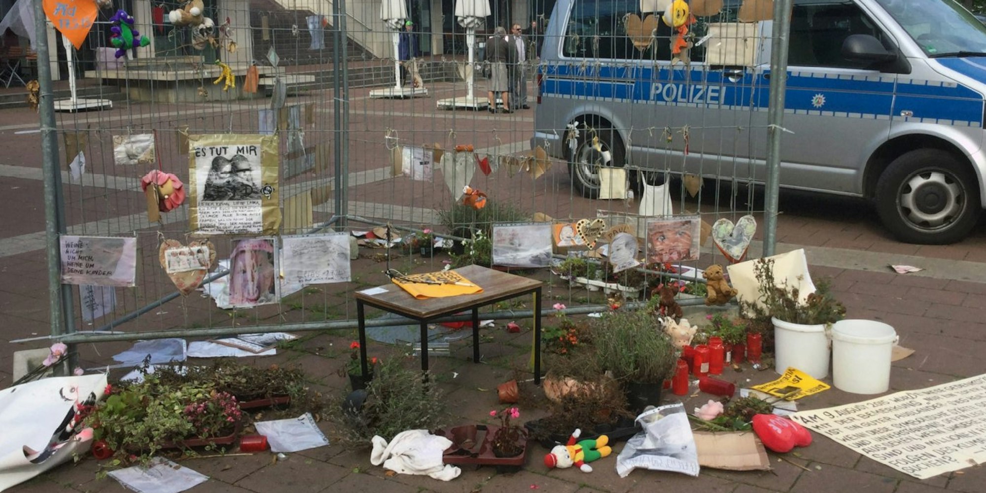 Siegburg – In der Nacht zum Donnerstag ist die inzwischen wieder hergerichtete Gedenkstätte „Sorry, 2015!“ für künftige Opfer des Klimawandels des Künstlers Hermann Josef Hack erneut zerstört worden. Dieses Mal gingen die Täter dabei sogar noch rabiater vor. Bereits am 9. August war die Gedenkstätte auf dem Europaplatz vor dem ICE-Bahnhof in Siegburg mit ausländerfeindlichen Nazi-Parolen geschändet und zerstört worden. In das Kondolenzbuch hatten Unbekannte fremdenfeindliche Parolen samt Hitlergruß geschrieben.
