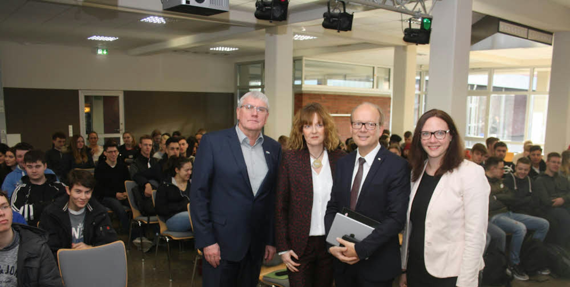 „Das geht auch, ohne dass man da sofort etwas unterschreiben muss“, sagte Kuper. „Gehen Sie einfach mal hin und schauen sich an, was dort gemacht wird.“ Eindringlich bat der Landtagspräsident die Schüler des Kollegs, an den Europawahlen im Mai teilzunehmen und dabei einer demokratischen Partei ihre Stimme zu geben.