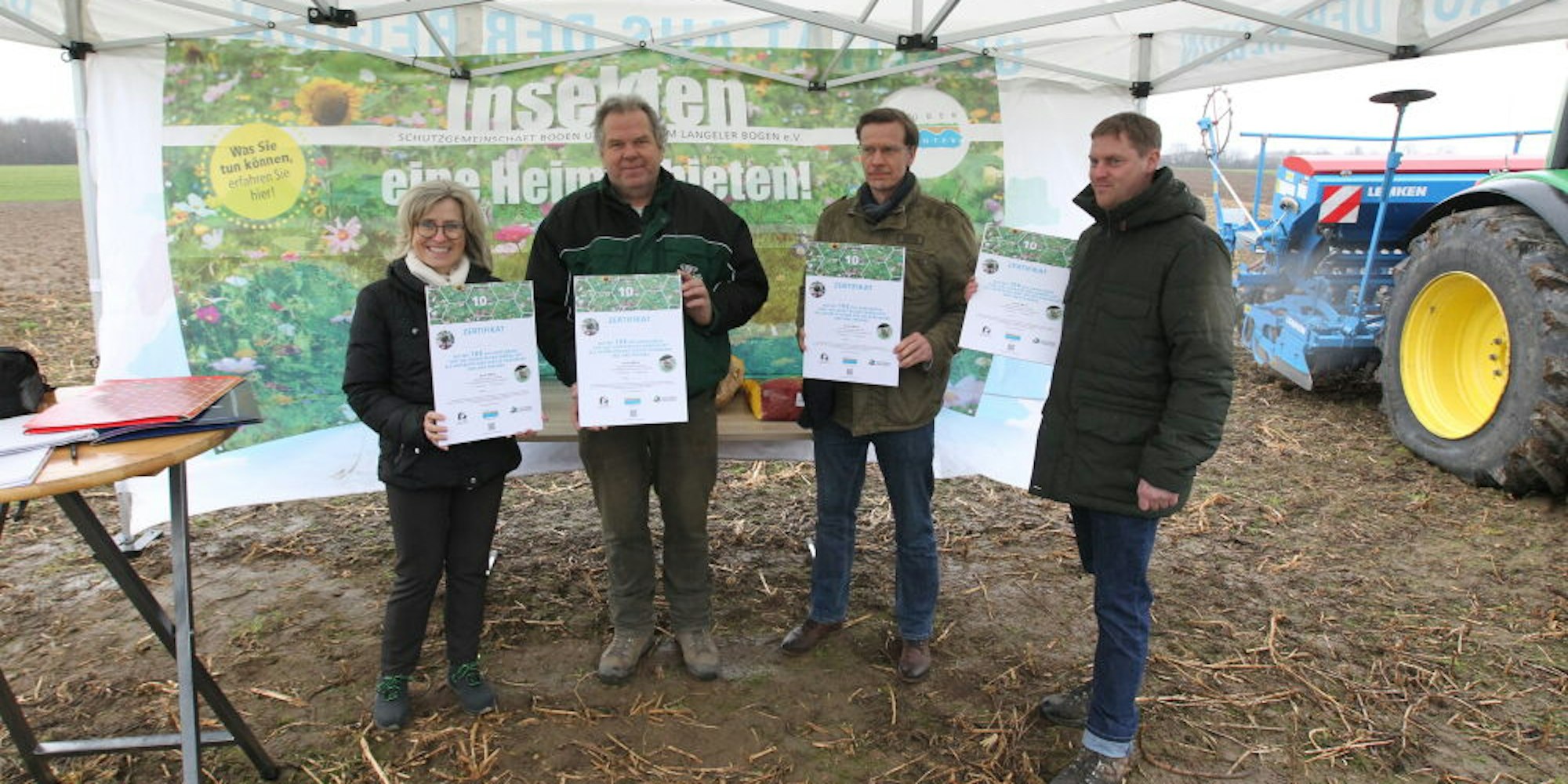 Am Projekt beteiligt sind (von links) Andrea Vogt (Stadtwerke), Bauer Karl-Josef Engels, Jörg Jansen (,Imkerverein) und Bernd Bulich (Landwirt und Vorstand des Arbeitskreises „Drüber und drunter“.
