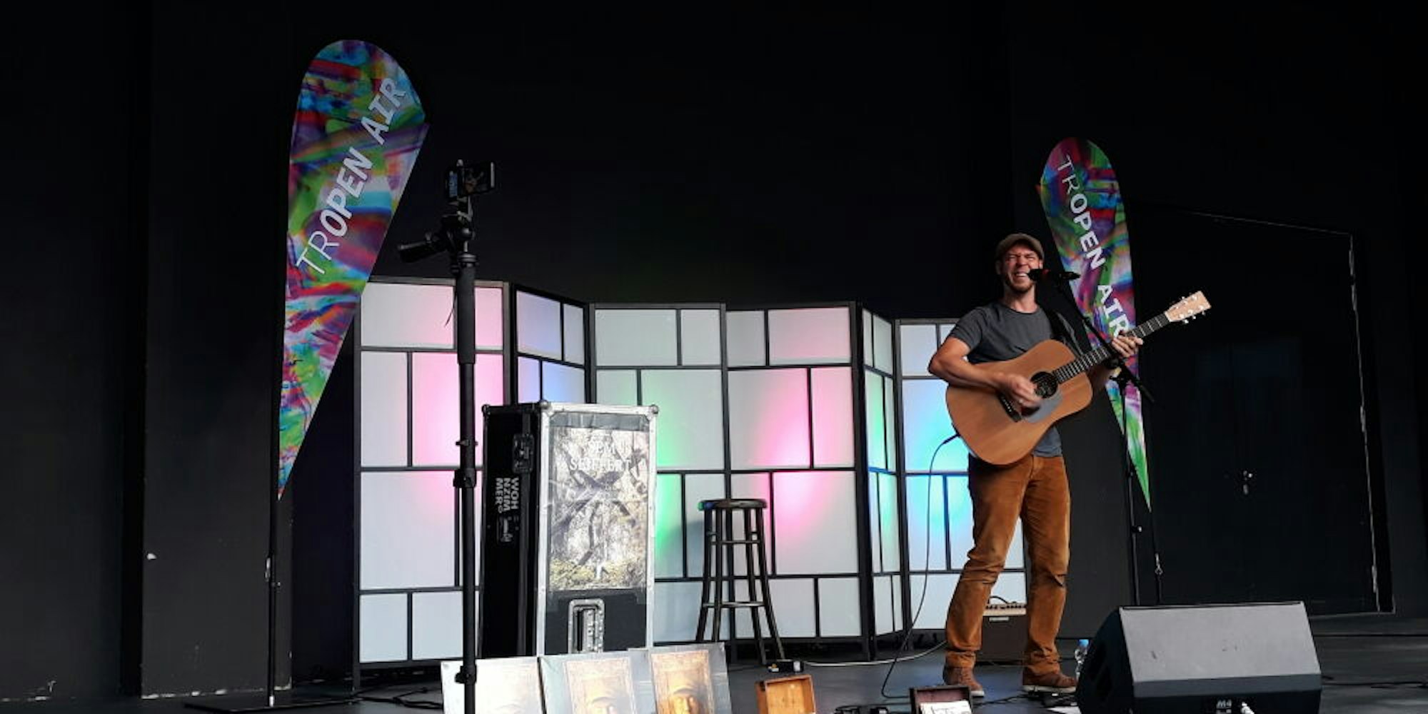 Die Band Radius und der Gitarrenkünstler Sem Seiffert bespielten am Freitag und Samstag den Platz hinter der Stadthalle. 300 Zuhörende waren zugelassen, mehr erlaubte das Hygienekonzept nicht. So wirkten die etwa 80 Gäste, die am Samstag dem Konzert von Sem Seiffert beiwohnten, ziemlich verloren auf dem großen Platz, der normalerweise 5000 Personen fasst.