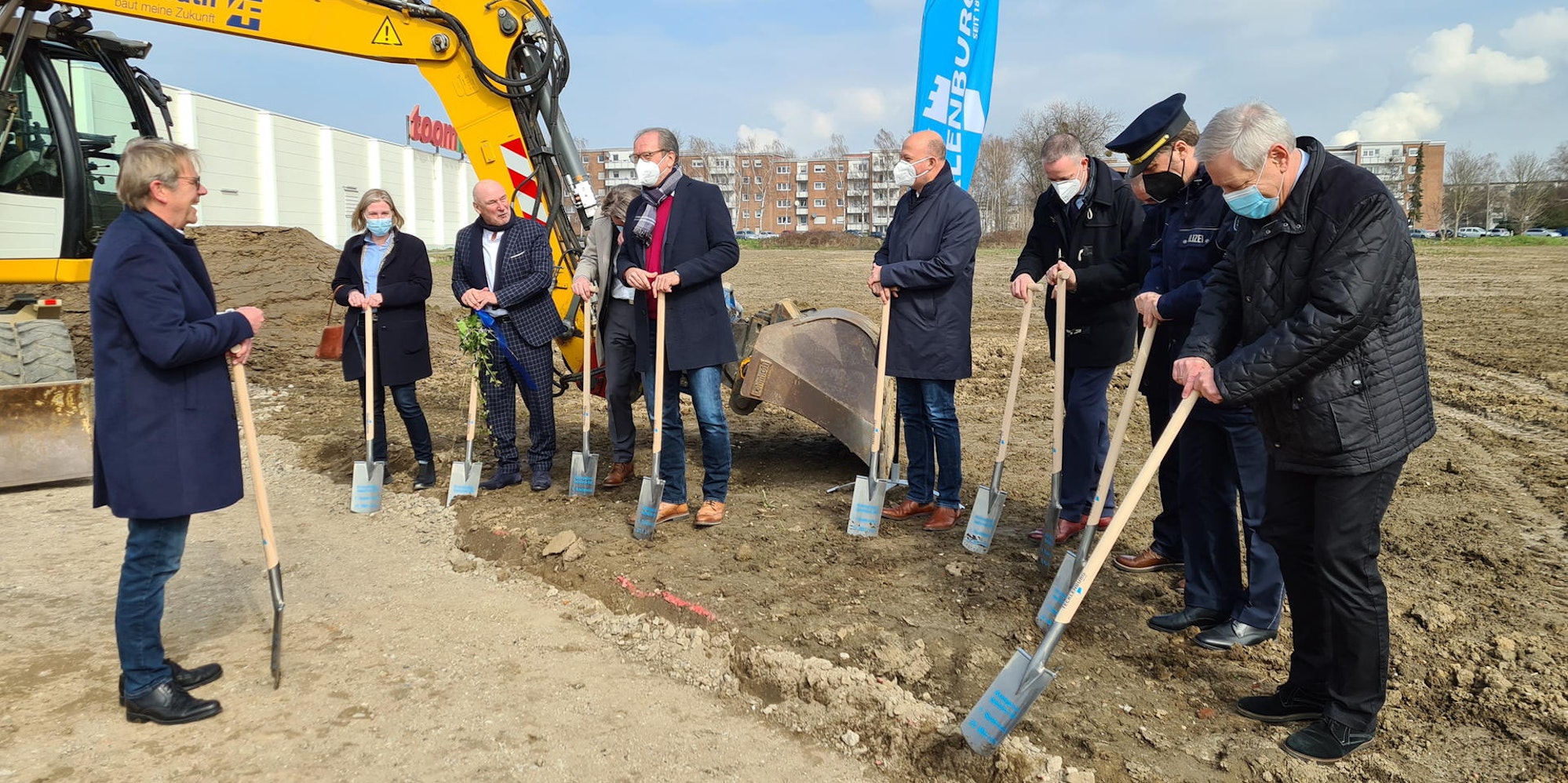 Symbolischer Spatenstich für die neue Polizeizentrale.