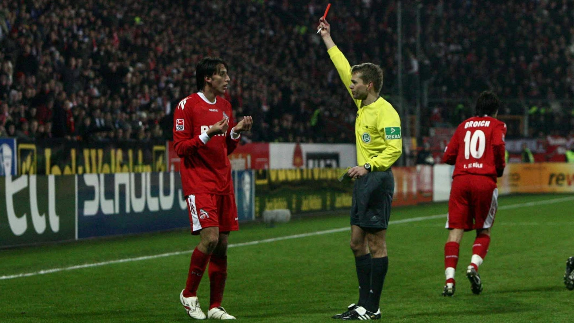 Pedro Geromel sieht im Dezember 2008 beim Spiel in Bochum die rote Karte.