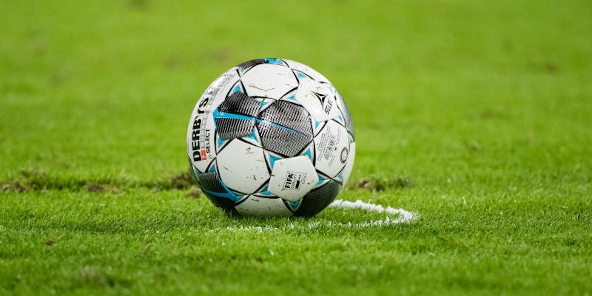Ein Fußball liegt auf dem Rasen.