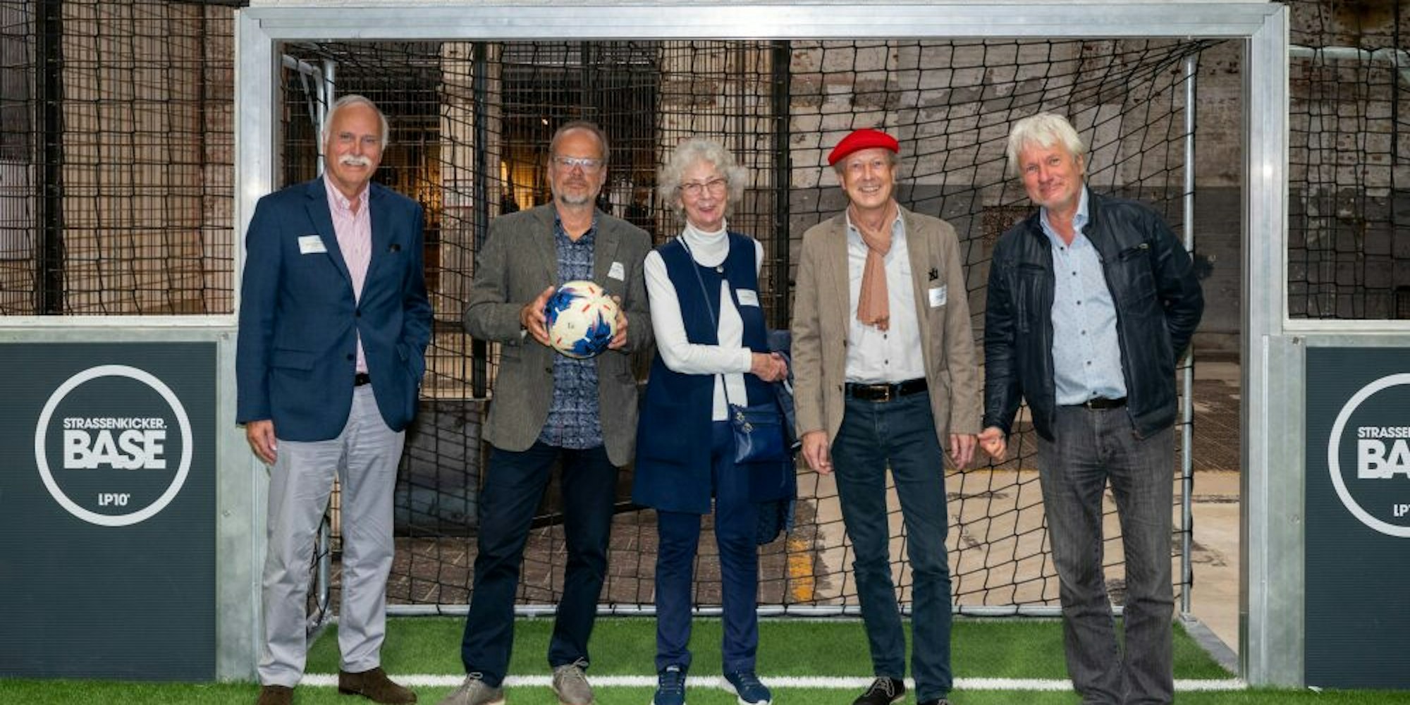 Bei Poldi im Tor: Karl-Heinz Goßmann, Christoph Bex, Hedwig Neven DuMont, Basti Koerber und Kabarettist Jürgen Becker.