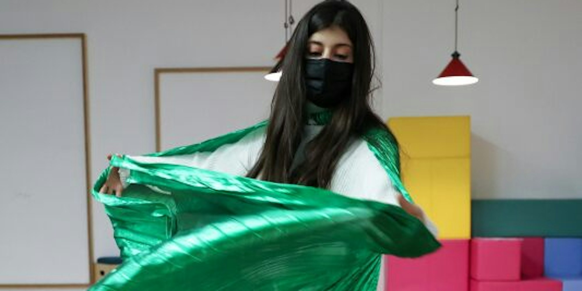 Seit über zwei Jahren kommen sie wöchentlich ins Flüchtlingszentrum Fliehkraft in Nippes, das Stück „Der Marsianer“ haben sie selbst geschrieben und entwickelt. Angefangen hat Ostbrise als kleine Geflüchteten-Gruppe, die sich im Park oder bei Regen unter der Brücke traf. Nun sind sie froh, dass sie jede Woche im Fliehkraft proben können, erzählt die 22-jährige Sherry, die dem Besuch extra ihr Kostüm aus dem Stück „Klang der Farben“ vorführt.